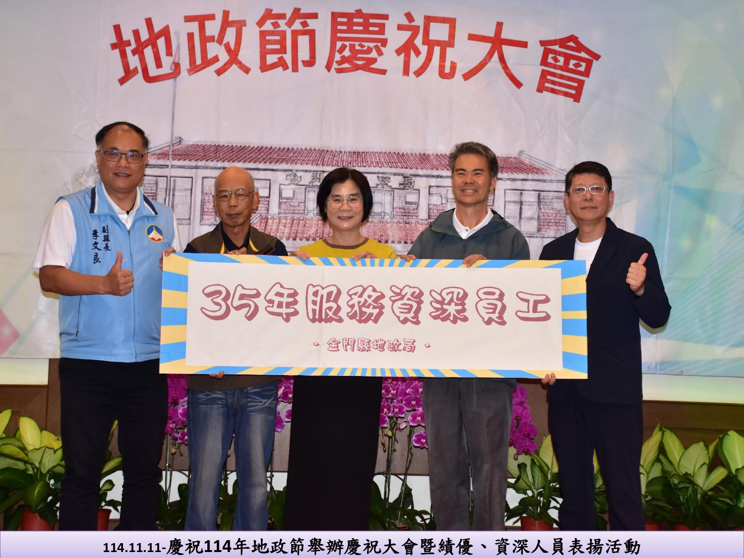 114.11.11慶祝114年地政節舉辦慶祝大會暨績優、資深人員表揚活動-為激勵地政人員士氣,本局在11月11日舉辦慶祝地政節暨表揚活動,期望藉由年度慶祝大會,對長期致力於地政工作及地政業務關心之各界人士致意。副縣長李文良、秘書長張瑞心及縣府相關局處主管及各界貴賓出席參加典禮,現場嘉賓雲集,隆重而溫馨。副縣長李文良頒獎表揚績優地政人員及資深員工,肯定地政人員的工作辛勞及團隊的努力,並期許以精益求精的態度服務鄉親,維護鄉親土地權益,落實本縣「簡政便民、土地安居」施政目標。