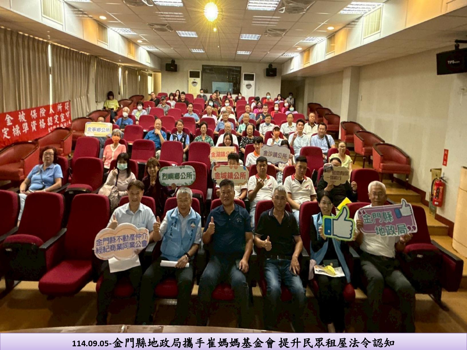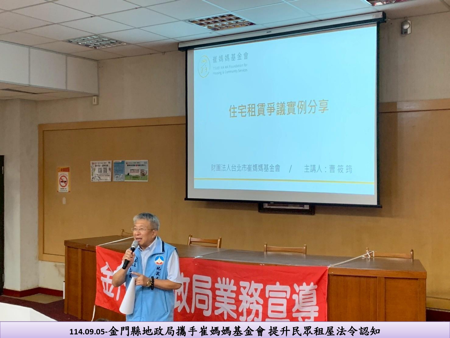 1140905金門縣地政局攜手崔媽媽基金會 提升民眾租屋法令認知-本局於114年9月5日舉辦「住宅租賃爭議實例分享」講習,特別邀請財團法人台北市崔媽媽基金會曹筱筠組長擔任講師,並邀集各鄉鎮調解委員會、消費者保護官、一般民眾及不動產業者共同參與。課程以多起實務案例切入,深入剖析常見的「惡房東」與「租霸」糾紛,並結合《住宅租賃市場發展及管理條例》及《消費者保護法》最新規範,逐一說明租屋契約應記載及不得記載事項。講習內容涵蓋租金、押金返還、電費計算、修繕責任及租賃期滿點交等細節,提醒民眾簽約前務必審慎檢視契約條款,以避免資訊不對等造成爭議。同時強調定型化契約的重要性,並介紹租金補貼申請、公益出租人稅賦優惠及租賃服務業相關規範,協助房東、房客及業者正確運用法令,共同營造公平、透明且安心的租賃市場。