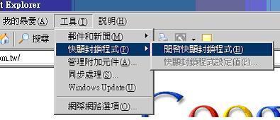 - 請點選【工具】 -> 【快顯封鎖程式】。